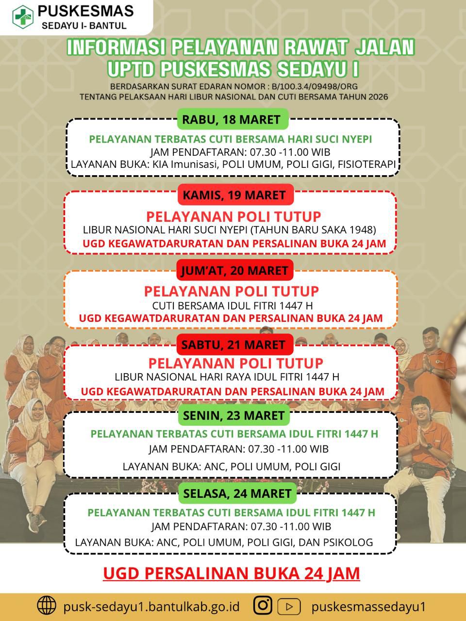berikut kami sampaikan informasi pelayanan rawat jalan di Puskesmas Sedayu I